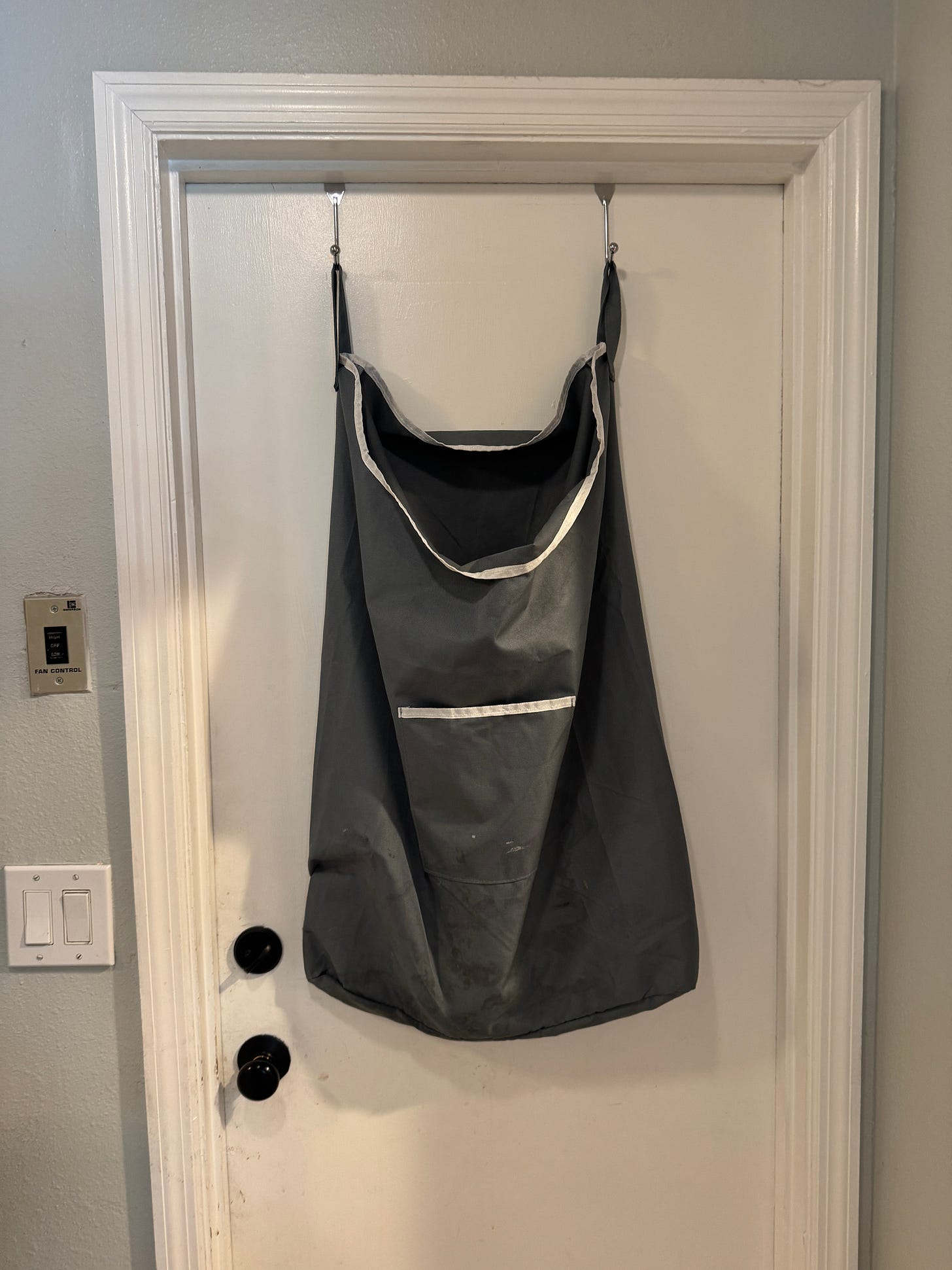 When I say I do a load of laundry most days, I mean that I check-in with the laundry every morning as part of my daily three. We have three hanging hampers. One in the master bedroom, one in the kid’s bathroom and one off the kitchen. Those get full in 1-2 days. Three full hampers equals one full load of laundry. It works better for our family to wash our laundry together because I live in Florida, I have two boys and we sweat a lot. If we leave clothes for more than a day or two, they get really stinky.