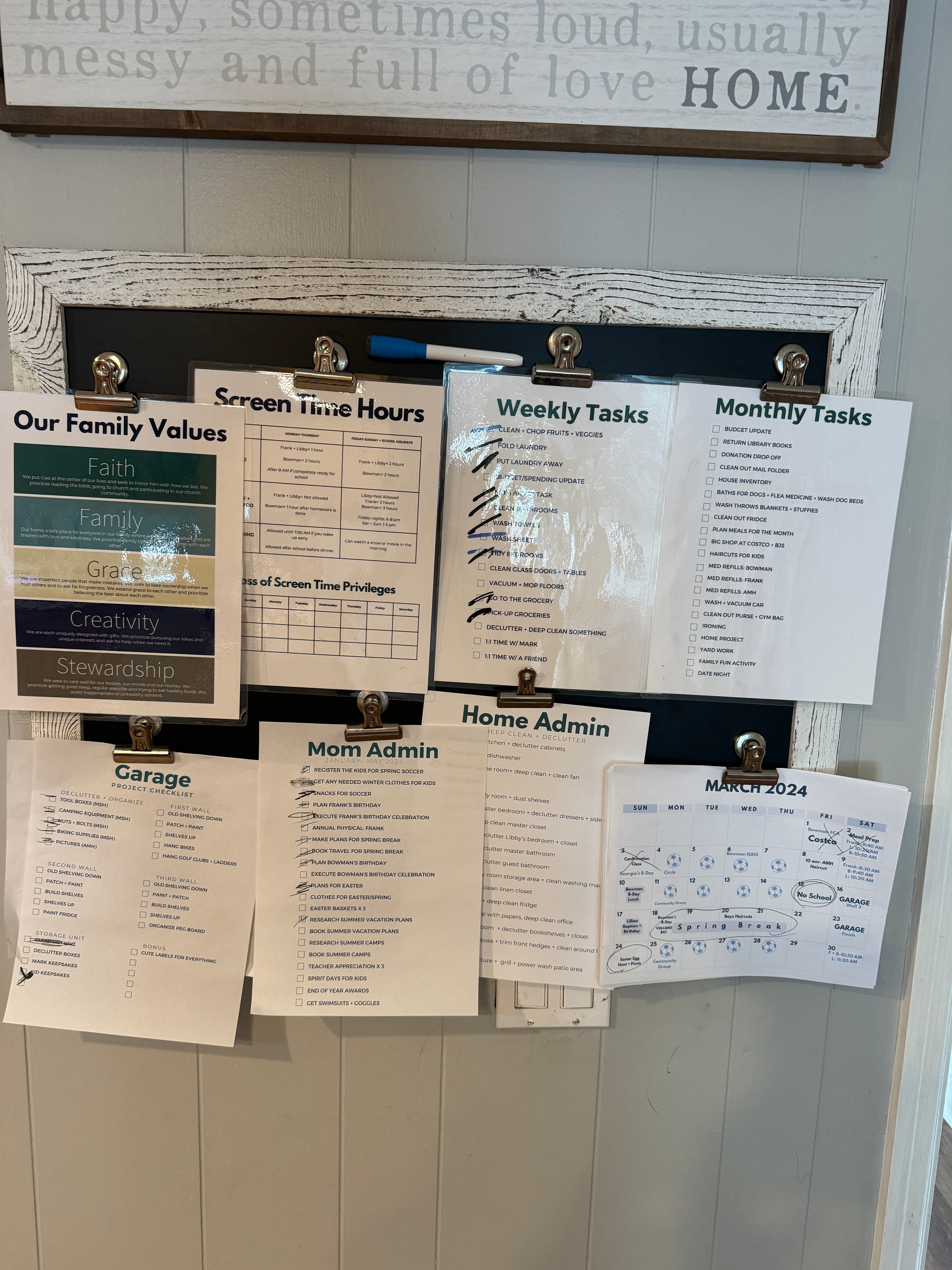 Here’s a little glimpse at my command center! This is always changing and evolving but having these visuals ready to go is key for me. I update the mom admin a few times a year and try and do one of those things each week. Each season I make a few tweaks and improvements but man do these visuals help me and my kids. Over 10,000 other families have put these same templates to use in their families and they are helping immensely.